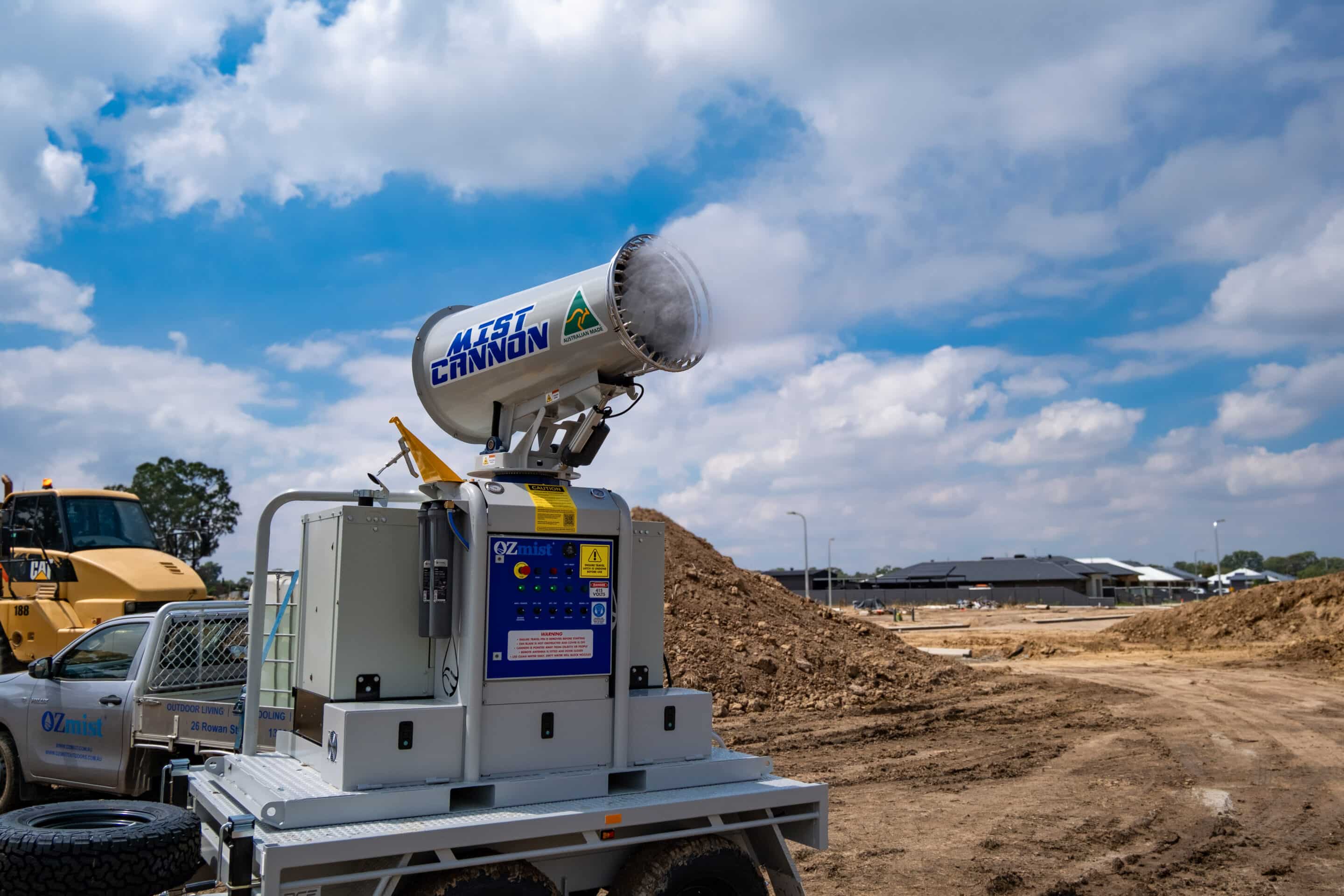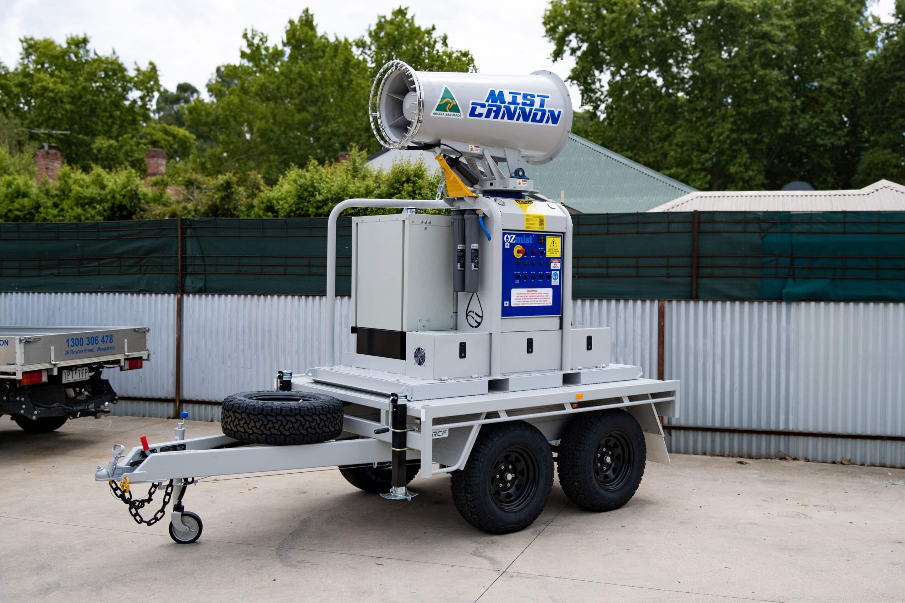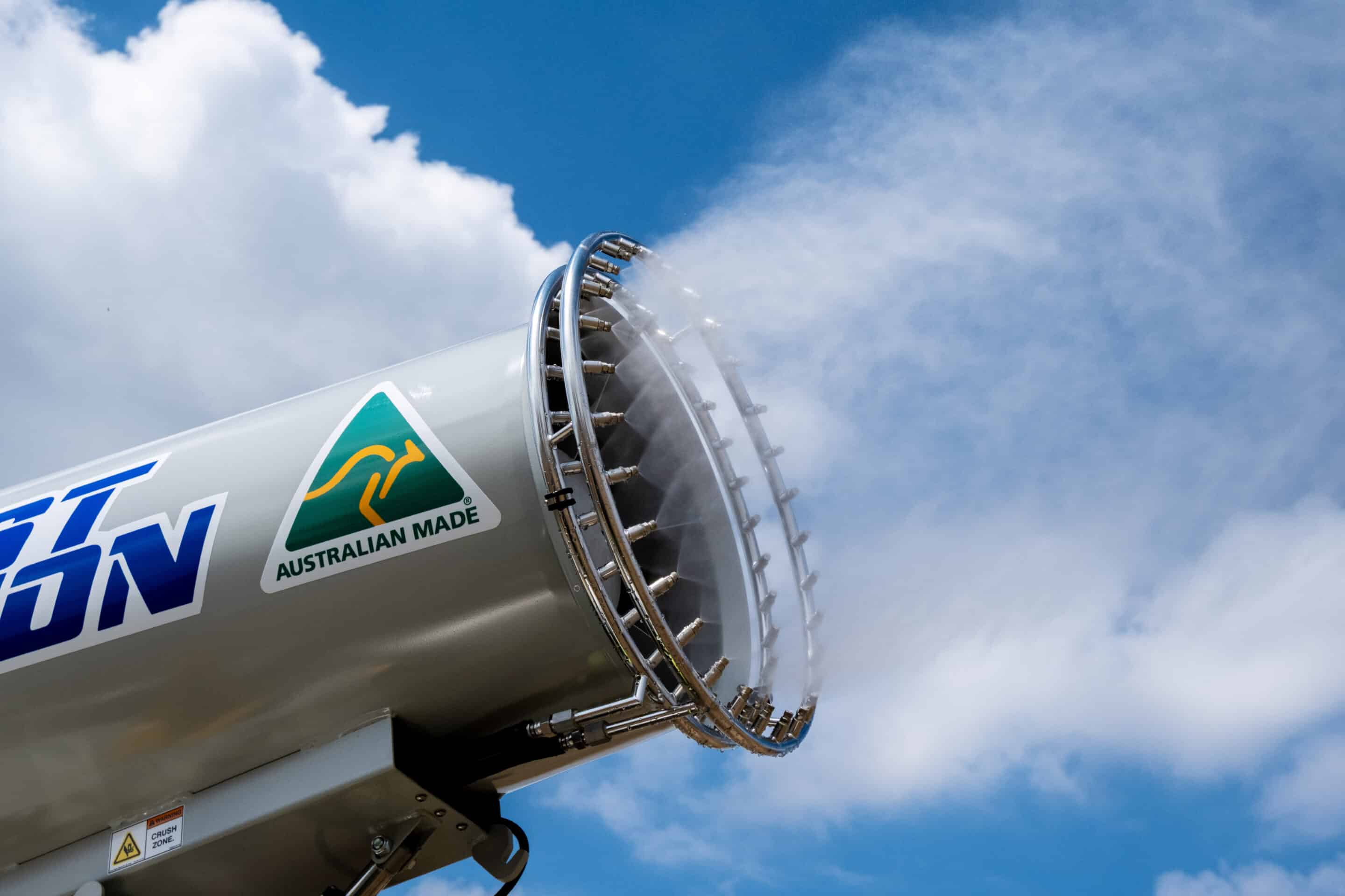 The D45AU unit’s powerful, high-speed fan, projects a cloud of targeted mist (pressurised water) into the air. A must have diesel mist cannon for worksite safety, air quality, compliance etc.