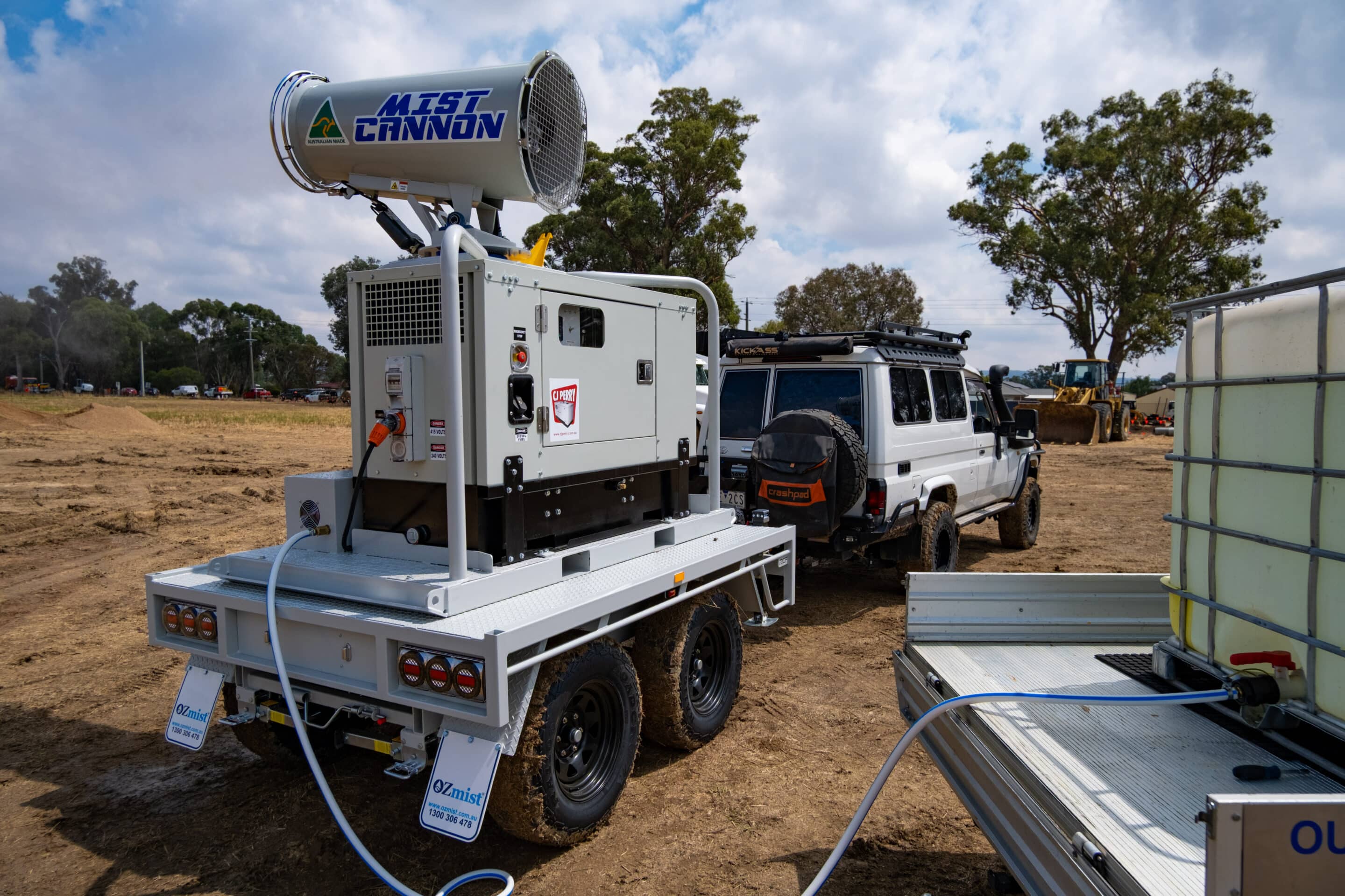 Diesel Powered, Dust Suppression in any Environment. Designed and built by OZmist as a solution for diesel only worksites and environments. 1000psi pressure and 60 x OZmist screw in nozzles create super fine mist, which encapsulates fugitive dust and airborne particles across large areas, dropping them to the ground.