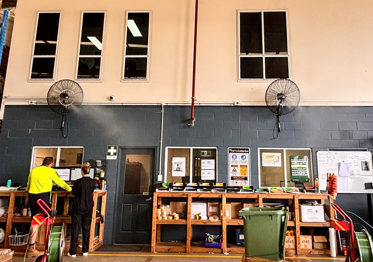 Industrial Fan Kits do not include wall mounted industrial fans. We supply the misting rings, high pressure pump, delivery lines, all components and hardware to retro fit to the front of wall mounted industrial fans, either existing or to be supplied separately. Suitable for wall mounted fans from 600mm to 750mm in diameter, and kits tailored to suit.