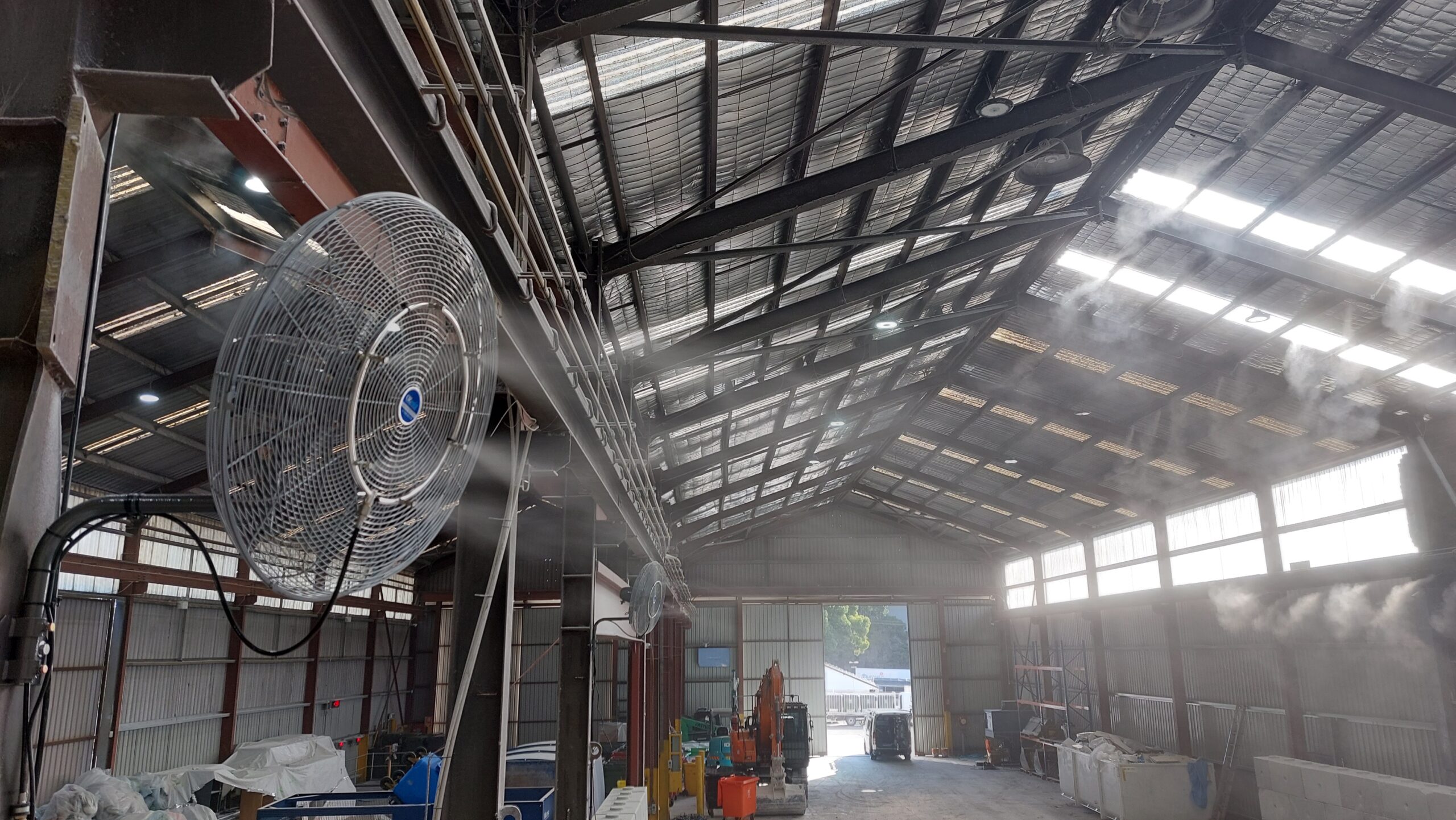 OZmist’s industrial fan based kits have become a game changer for heat management within indoor workshops, factories, and sheds around the country.