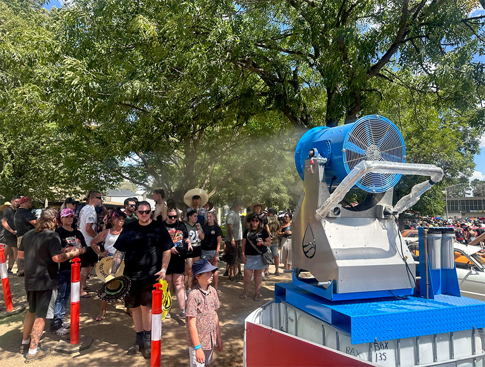With rapid temperature reduction, these impressive units create a dramatic misting effect that not only keep crowds comfortable and safe in the heat, but adds to the festival atmosphere.